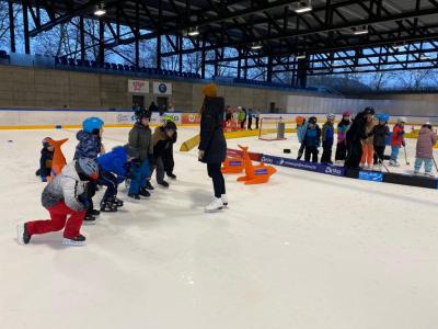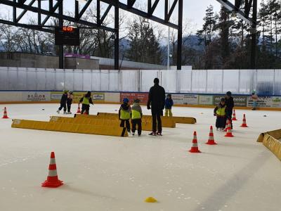 Zuerst wurden ein paar Runden auf dem Eis gedreht, danach wurden die Kinder begrüsst. Zu Musik wurde gemeinsam getanzt, bevor die Kinder auf die verschiedenen Posten verteilt wurden. Ein Posten war Eiskunstlauf, Pirouetten auf den Spitzen gab es gerade noch nicht, aber verschiedene Fahrübungen wurden gemacht. Beim Posten Eishockey , bekam jeder einen Hockeystock in die Hand und musste versuchen damit möglichst viele Pucks im Tor zu versenken. Beim nächsten Posten gab es weitere Fahrübungen. Hier sahen die Kinder die speziellste Art von Schlittschuhen, die des Eisschnelllaufes. Beim vierten Posten fuhr jedes Kind so schnell es ging eine Runde. Die schnellsten qualifizierten sich dabei für das Finale des Speedy-Cup am 2.März in der Bosshard Arena in Zug.